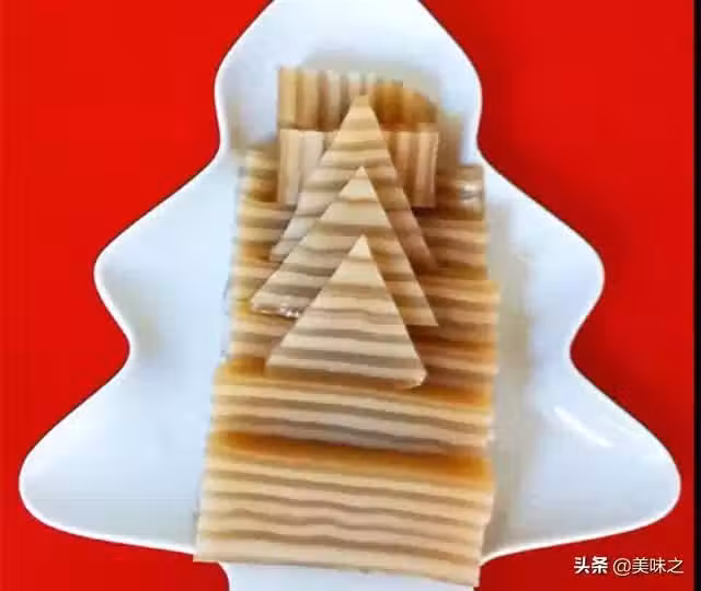 9、凝固後打開蓋,再加入白色粉漿,份量要和紅糖漿相同。蓋緊再蒸至表面凝固。再加入紅色粉漿蒸,來回重複這步驟直到粉漿沒有為止。