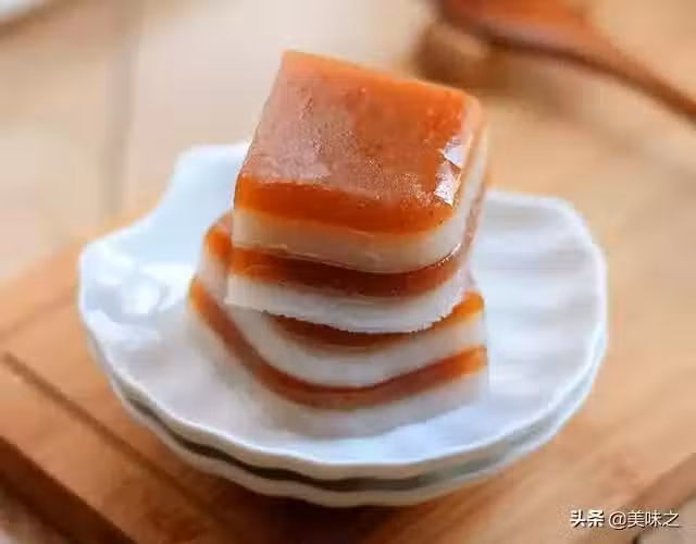 8、取出來,再倒入一半的椰汁漿,蒸8分鐘至凝固。重複第10和11步驟,蒸好的紅棗糕冷卻後切塊食用。