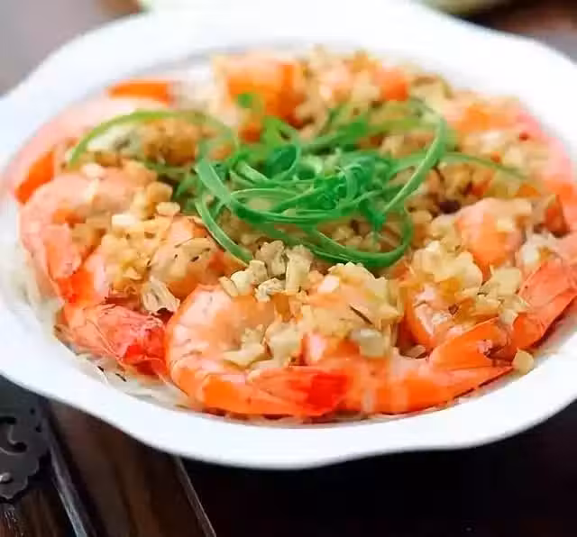 蝦、龍口粉絲、大蒜、料酒、生抽、鹽、蔥花。