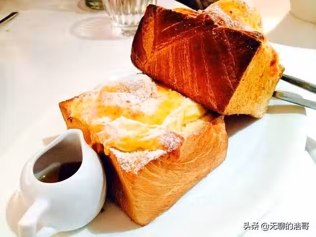 2,把中間切出來的麵包切成條,然後塗上黃油,撒上砂糖