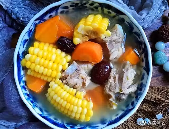 排骨適量、玉米兩根、胡蘿蔔適量、蔥適量、蒜適量、油適量、水適量、鹽適量、料酒適量。