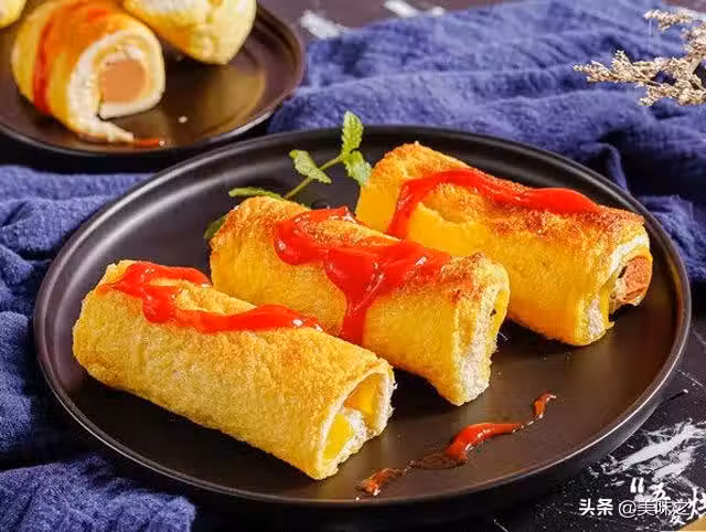 3、捲起吐司收邊壓緊,可用牙籤固定。