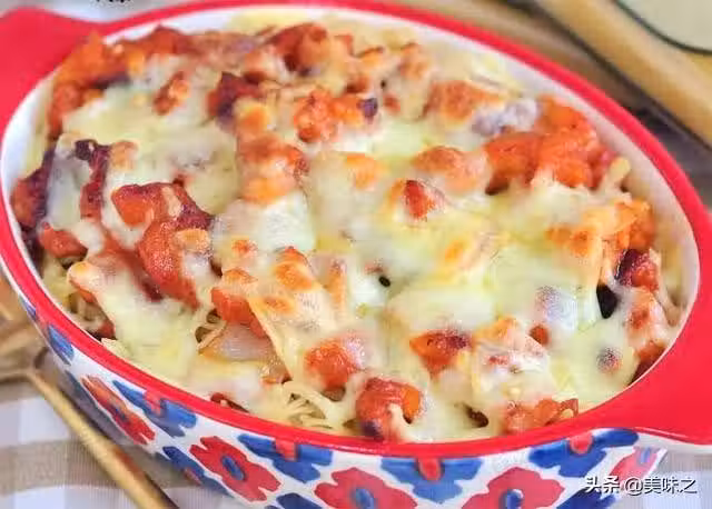 7、放入烤箱中,210度烘烤3分鐘,至表面芝士融化。