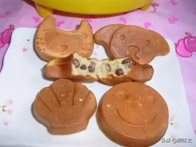 雞蛋4個、自製蜜紅豆適量、低筋麵粉120克、色拉油12克、白糖80克。
