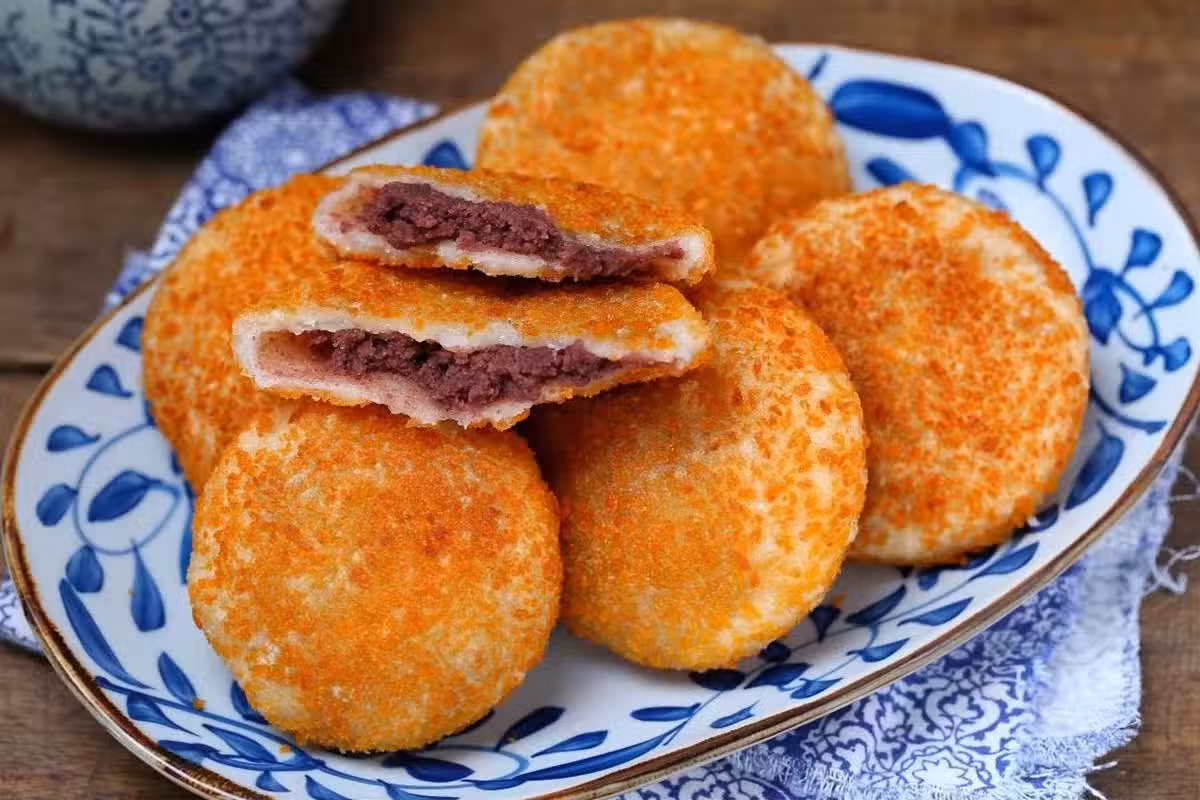 豆沙餡是我自己炒的,味道更純正好吃,嫌麻煩也可以買現成的紅豆沙。表面裹一層麵包糠增加酥脆口感,也可以省略直接炸。炸制過程火候不要太大,以免出現焦糊狀。
