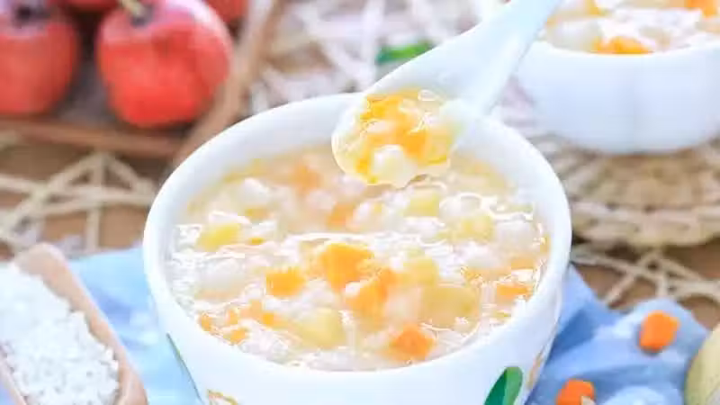 功效:健脾潤肺、潤膚養顏 材 料:山楂 20克、雪梨 30克、南瓜 20克、粥米 40克 做 法: 1. 將山楂去皮去籽 2. 分別將山楂切小丁、雪梨切小丁、南瓜切小丁 3. 鍋中倒入南瓜丁、雪梨丁、山楂丁、洗凈粥米 4. 再倒入700毫升清水大火煮35分鐘 5. 開胃的山楂雪梨粥就煮好啦