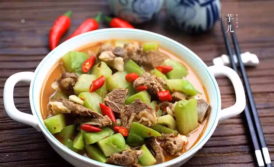 食材:佛手瓜 3個,排骨 400克,生薑 一個,小米辣 3個,豆瓣醬 2大勺。
