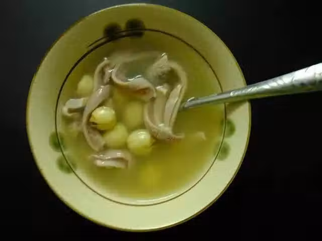 將蓮子和豬肚放入,大火,沸騰後轉小火