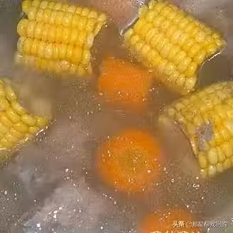 2、煲內注入清水(水量自己看著辦,多一些),水開後加入薑片、玉米棒、排骨塊,用大火煲開,改中火煲40分鐘。