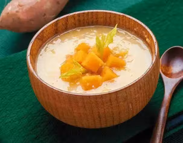 紅薯沖洗乾淨,削掉表皮,切成小塊,不要太小了,因為熬稀飯的時候會越熬越小。春季的紅薯發芽的頻率比較高,買紅薯的時候不要發芽,變質的。摸起來軟軟的,就有可能是已經霉變的壞紅薯。紅薯,土豆發芽變質的都不能吃,吃了會中毒。