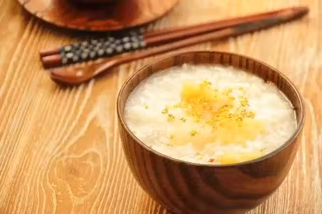 開鍋後要時不時攪動一下,以免糊鍋,粥快煮好時,加入干桂花,粥里會有淡淡的桂花香味和水果香氣。 這款粥里,可以加冰糖,也可以不加,因為水果里會有淡淡的甜味滲出,如果喜歡更甜一些的口感,可以加入少許冰糖。粥煮多久,以個人口感來定。