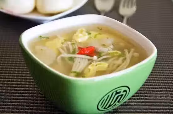 用料:金針菇、雞蛋、平菇、芹菜葉、水、濃湯寶