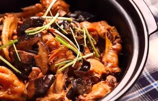 用料:三黃雞1斤、冬菇6個、木耳適量、針菜適量、蔥姜蒜適量