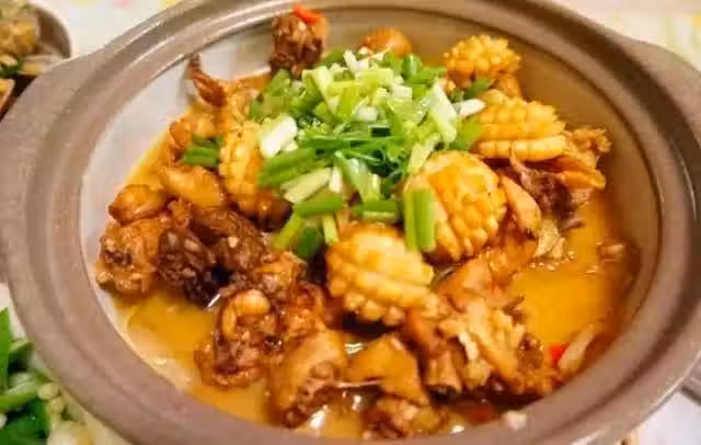 用料:鮑魚10隻、雞半隻、大蔥、蒜姜、朝天椒、小蔥