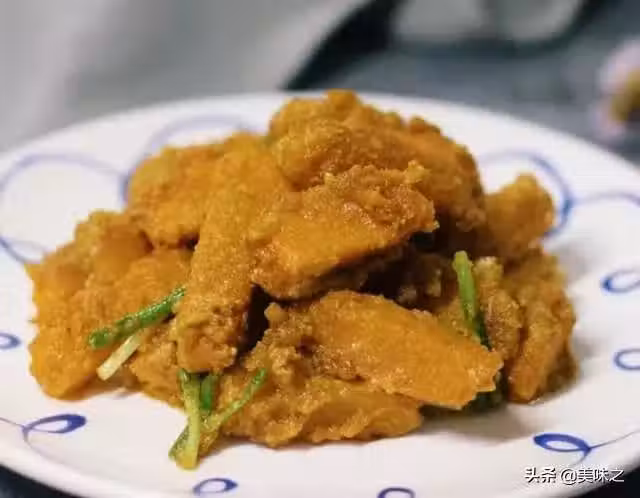 4、鍋里放花生油,油溫6成熱時倒時鹹蛋黃。