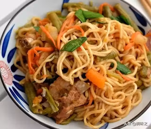 排骨1000克、扁豆600克、土豆1個、胡蘿蔔2根、青蒜3棵、麵條600克、蔥半棵、大蒜1頭、姜1塊、油適量、醬油適量、蚝油適量、水適量、鹽適量、老抽少許。
