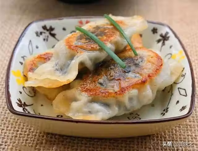 7、為了保證鍋貼內部的餡料熟透,撒下一點清水。