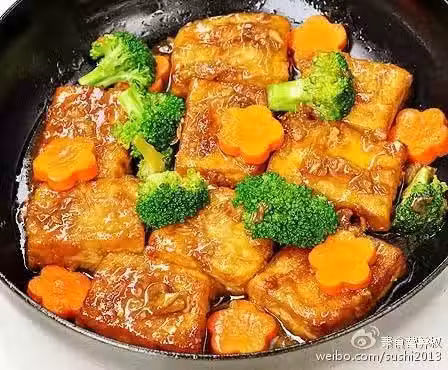 食材:南豆腐350克,胡蘿蔔50克,西蘭花100克,薑蓉1大匙,玉米澱粉20克,生抽,砂糖,素蚝油,料酒,高湯