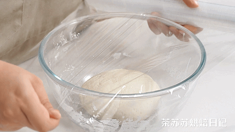 5、發酵結束後,拿出揉搓排氣,用搟麵杖搟壓成一個方形,厚度在0.3cm左右,然後均勻鋪上糯米飯,鋪平後再整個捲起來,收口捏緊