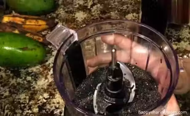 步驟二:將炒好的芝麻倒入攪拌機,開啟干磨功能