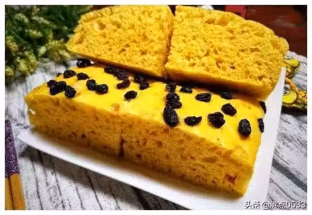7、表面再放上一些紅棗和葡萄乾,放入蒸鍋大火蒸35-40分鐘