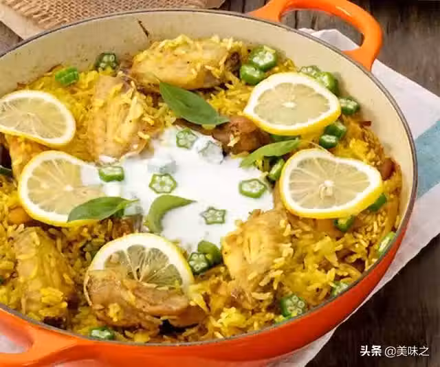 9、飯燜好出鍋後拌入秋葵,以酸奶為sauce,配上檸檬片或一些你喜歡的香草,就一起開動吧!