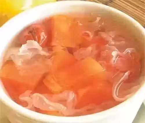 木瓜含有豐富的維他命a及c和纖維,當中的水溶性纖維更加有助平衡血脂水平,還能消食健胃,對消化不良具有食療的作用。銀耳性平、味甘淡,有滋陰、潤肺、養胃、生津、益氣、補腦、強心之功效。