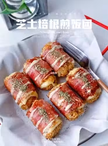 好吃不胖會拉絲,芝士培根煎飯團,剩米飯秒變大餐!