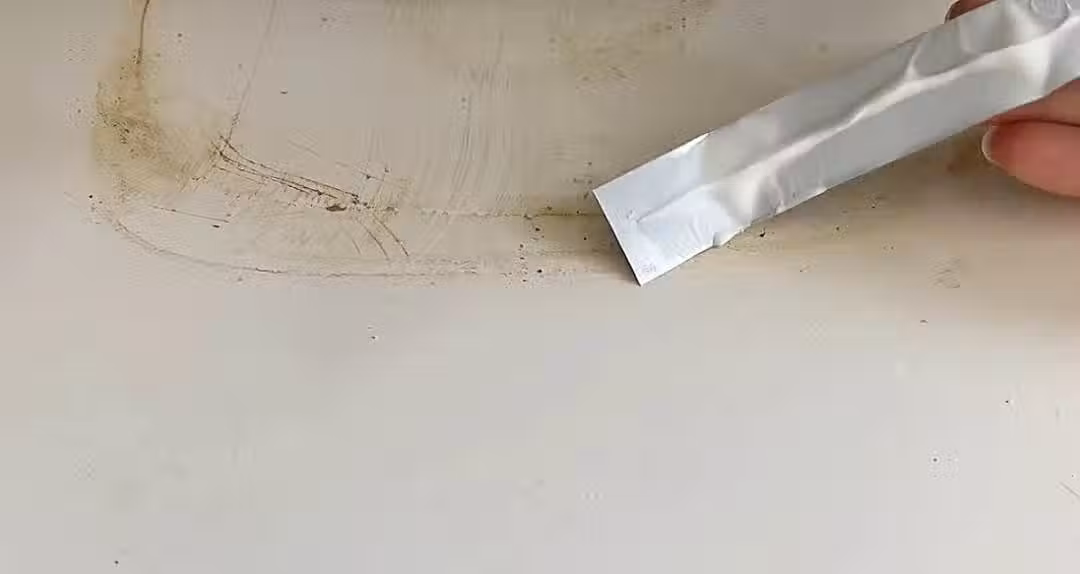 家裡的桌面使用時間久了之後,其表面難免會摻有一些劃痕或者是污漬,這樣就影響到表面的美觀性,這時我們就可以利用牙膏皮在上面來回的摩擦,若是桌面的劃痕小而且很輕微的話,像這樣把牙膏來回摩擦在劃痕的表面,再使用軟毛刷沿著臺面劃痕處進行反復的刷動,大約刷十幾秒左右,然後使用濕的抹布將其擦拭乾凈,修復即可。這樣桌面不僅變得非常的干凈,而且劃痕也被修復好了,一舉兩得哦。