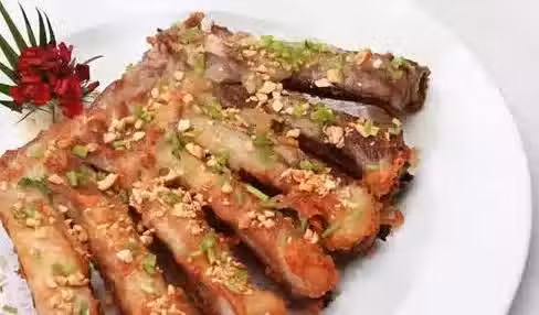3.將主料排骨均勻裹上雞蛋糊加入5成油溫中,炸至起酥,把油空出,就炸製成熟了。
