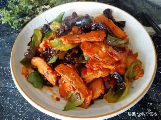 【尖椒回鍋肉】所需材料:五花肉500克、尖椒4個、木耳適量、油鹽適量、郫縣豆瓣醬1湯匙、蔥1段、姜2片、大蒜2瓣、料酒1湯匙、生抽醬油1湯匙、白糖1茶匙、