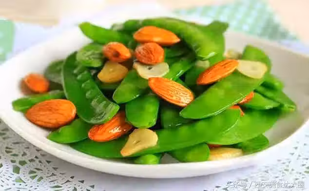 材料:荷蘭豆,杏仁,蒜