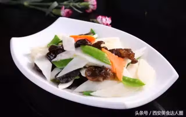 1.山藥去皮切薄片、青紅椒洗凈、黑木耳泡發;