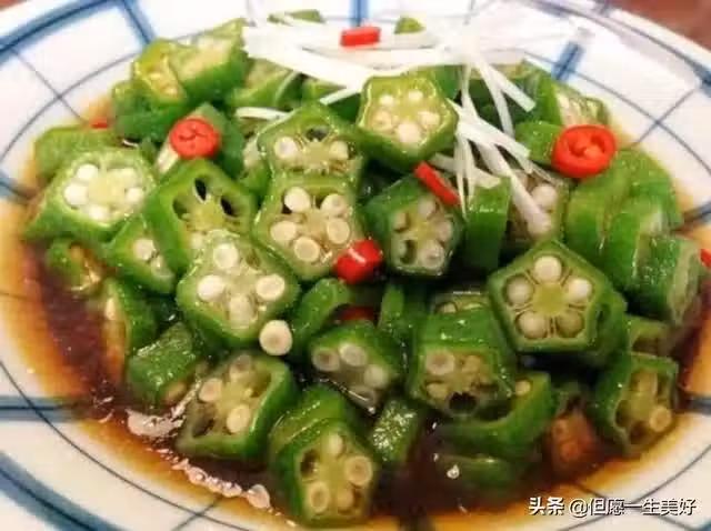 用料:秋葵5隻、大蒜2瓣、生抽若乾、麻油適量、老乾媽適量