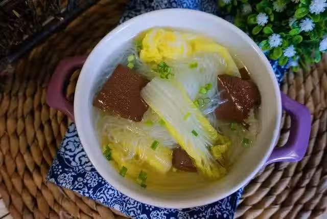鴨血1盒,粉絲半卷,娃娃菜1棵,鹽2克,水適量,香蔥少許