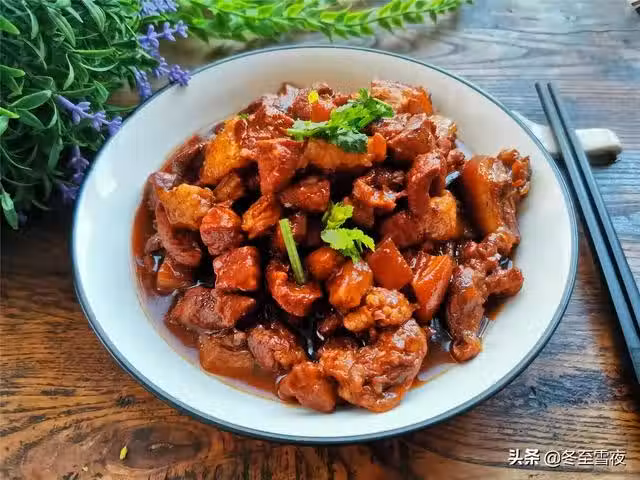 7.燉肉時用小火,可以把豬肉的油脂充分煮出來,吃著不膩,到時間後剩少許湯汁時,加入鹽調味,用大火收下汁即可,注意不要糊鍋,這樣一盤色香味俱全的紅燒肉就做好了。