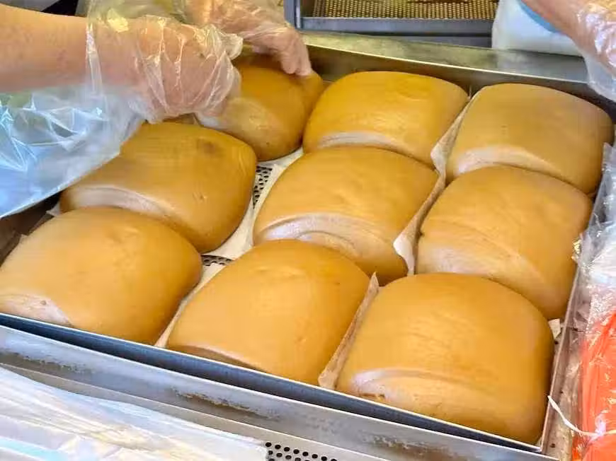就像是顆寶寶枕的大小,如果說這是枕頭我也相信了,我從來沒有看過這種尺寸的饅頭,難怪大家都慕名而來~