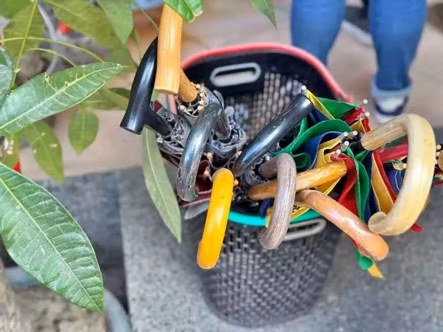 闆娘怕大家西曬會曬到中暑,貼心的準備了愛心陽傘讓大家可以自由取用,排隊的時候才不會被西曬曬到昏頭,真的很貼心,另外也設有博愛座,如果是老人或小孩可以登記完到前方座位區坐著等。
