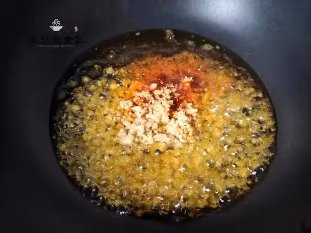 5、倒入泡發後清洗乾淨的干蝦仁,加入適量料酒除腥,翻炒入味;