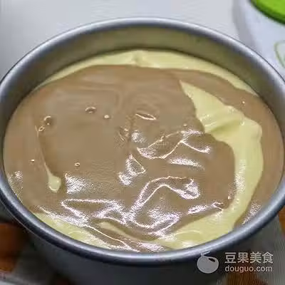 17、最後裝到模具八分滿,從20公分高處垂直震兩下,震出大氣泡。(如果裝不到8分滿,可能是蛋白沒打發好或者消泡了)。我