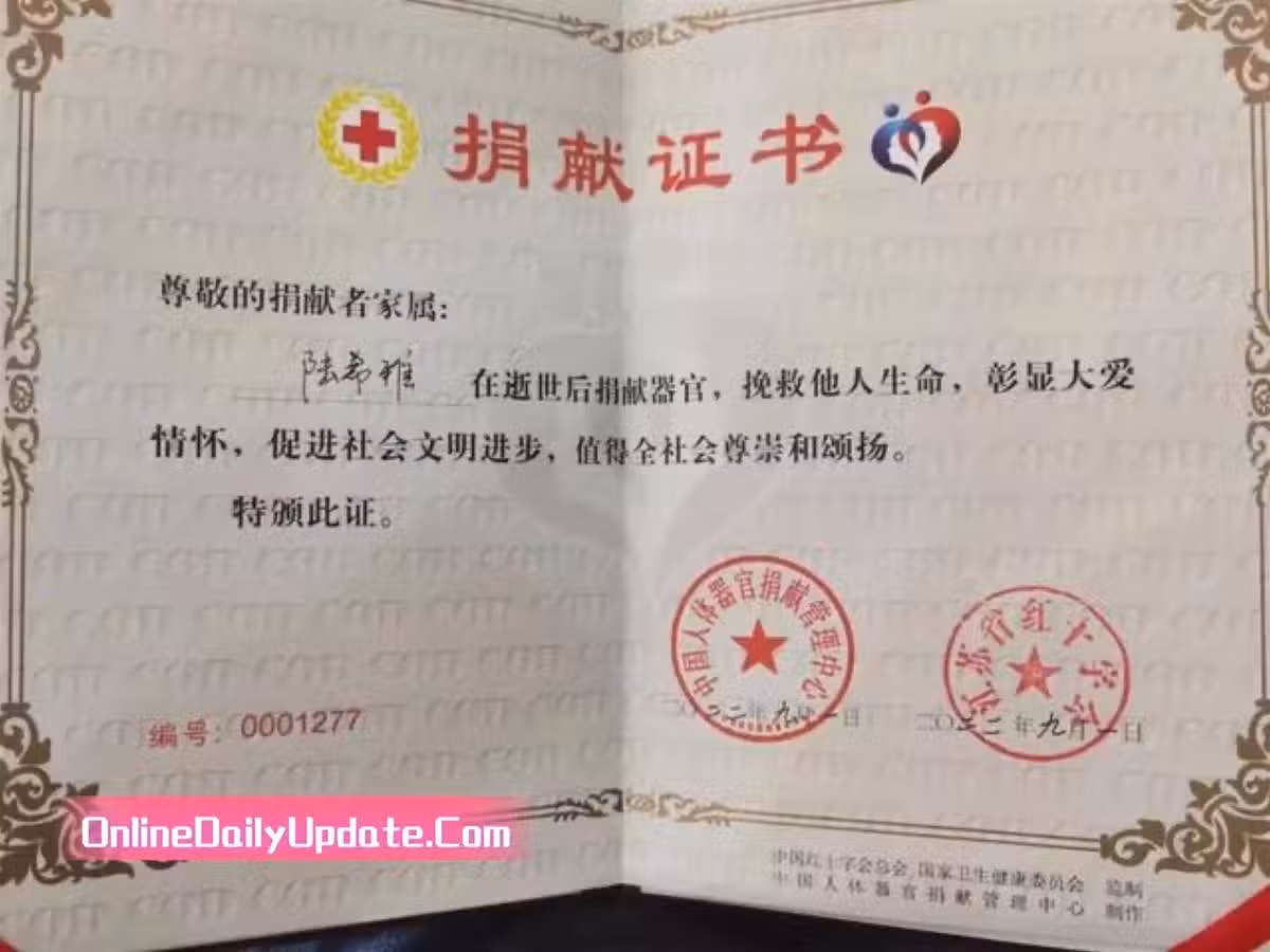 陸希雅捐獻的一肝兩腎雙肺和兩片角膜