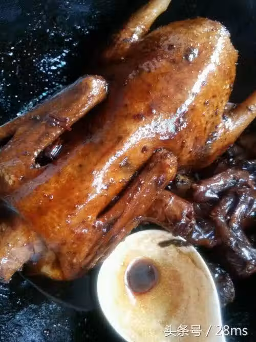 13. 查看差不多有半小碗汁時加入少許味精,湯汁淋幾遍鴨身,可以起鍋了