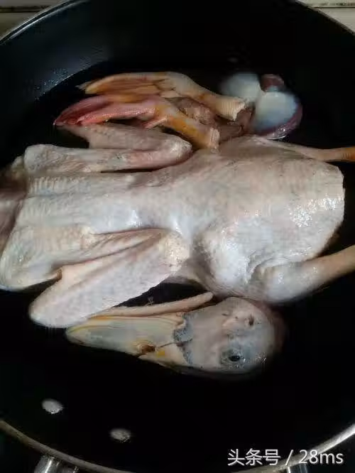 3. 鍋中放水,放入鴨子和仕件,鴨肝先不要放,鍋中水到鴨子一半就可以了,大火開煮。