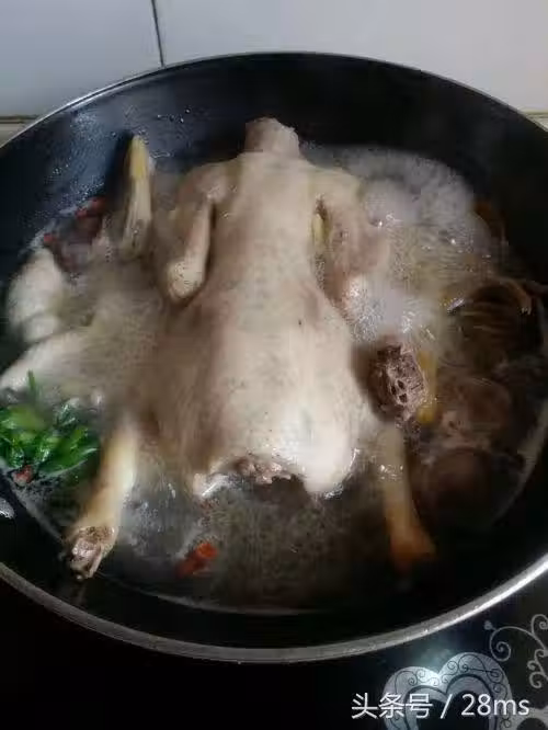 6. 料酒加好有泡沫再繼續撈掉,滾2分鐘加入準備好的蔥、姜、香葉、八角