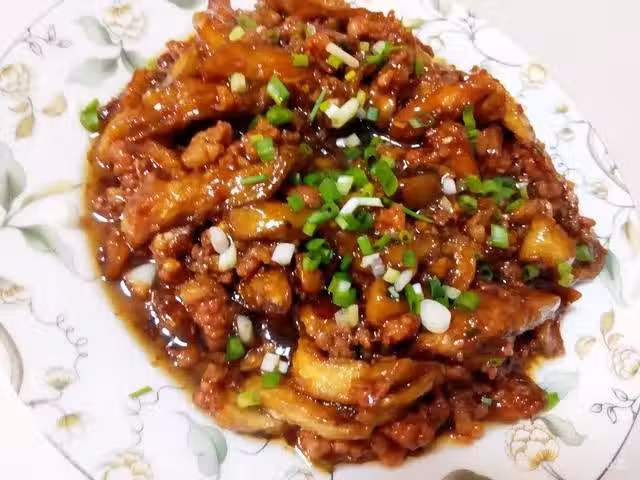 做法:茄子切成長條狀,待鍋中的油燒熱之後將其放進去用大火炸,最好是炸兩次,可以減少茄子吸入的油分。炒鍋中留底油,燒熱後加入適量的郫縣豆瓣醬,炒出紅油之後倒入蔥姜蒜爆香,再把肉末加進去大火翻炒。接下來加適量的料酒和醬油,炒至肉沫變色後建行茄子倒進去一起翻炒,稍作翻炒之後將做好的魚香汁倒進去(魚香汁做法和上面一樣)。大火不斷的翻炒,最後加少許蚝油調味,水澱粉勾芡出鍋。
