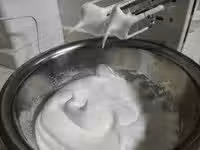 2.蛋黃里加入30克糖,打至顏色變淺,濃稠。分次加入玉米油,攪打至濃稠。