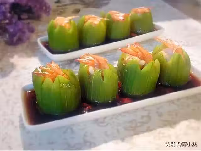 捲起蝦肉,塞在處理好的絲瓜盅里。