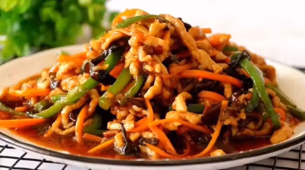 主料: 豬裡脊400g尖椒50g冬筍80g胡蘿蔔80g木耳80g紅泡椒2湯勺