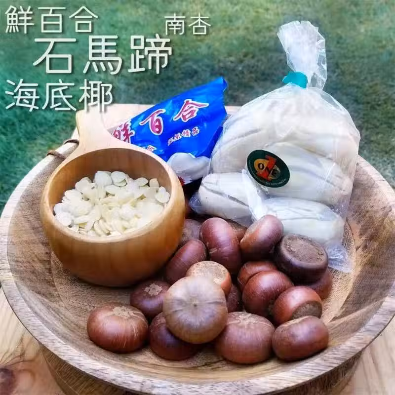石馬蹄、泰國海底椰、鮮百合、南北杏配蜜棗、果皮
