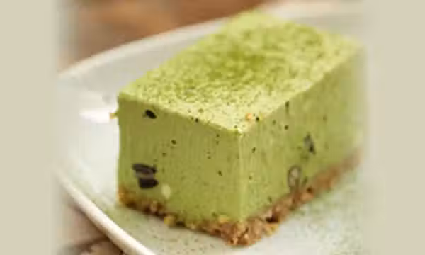 8. 將加入抹茶粉的起士糊倒入模中撫平,然後放進冰箱。